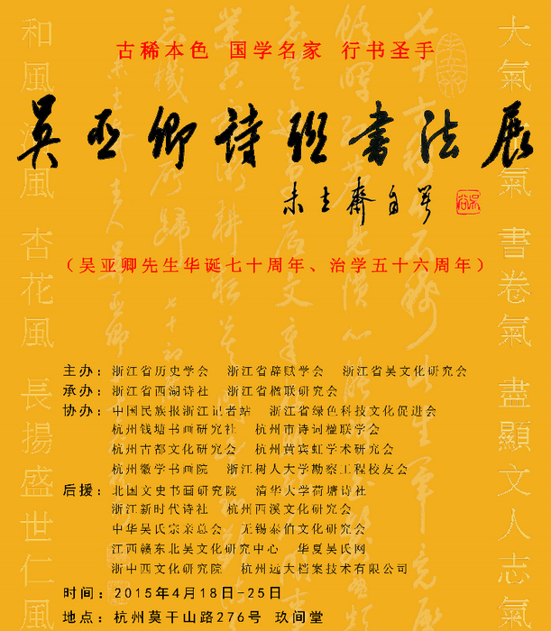 70歲那年,吳老師送了自己一份賀禮——舉辦了“吳亞卿詩聯(lián)書法展”。最為特別的是,所有的書法作品,所書寫的內(nèi)容都是吳老師原創(chuàng)的詩詞與楹聯(lián)。