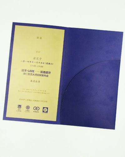 做好了賀卡/請柬 還需要一個信封。信封一般來說就不必太奢華高檔次了,120g-200g紙張 彩色印刷 在模切 粘貼便可。 單頁有很多客戶喜歡封面用特種紙做 然后各種工藝,讓整個請柬檔次瞬間翻倍,成為一個愛不釋手可觀賞性的藝術(shù)品